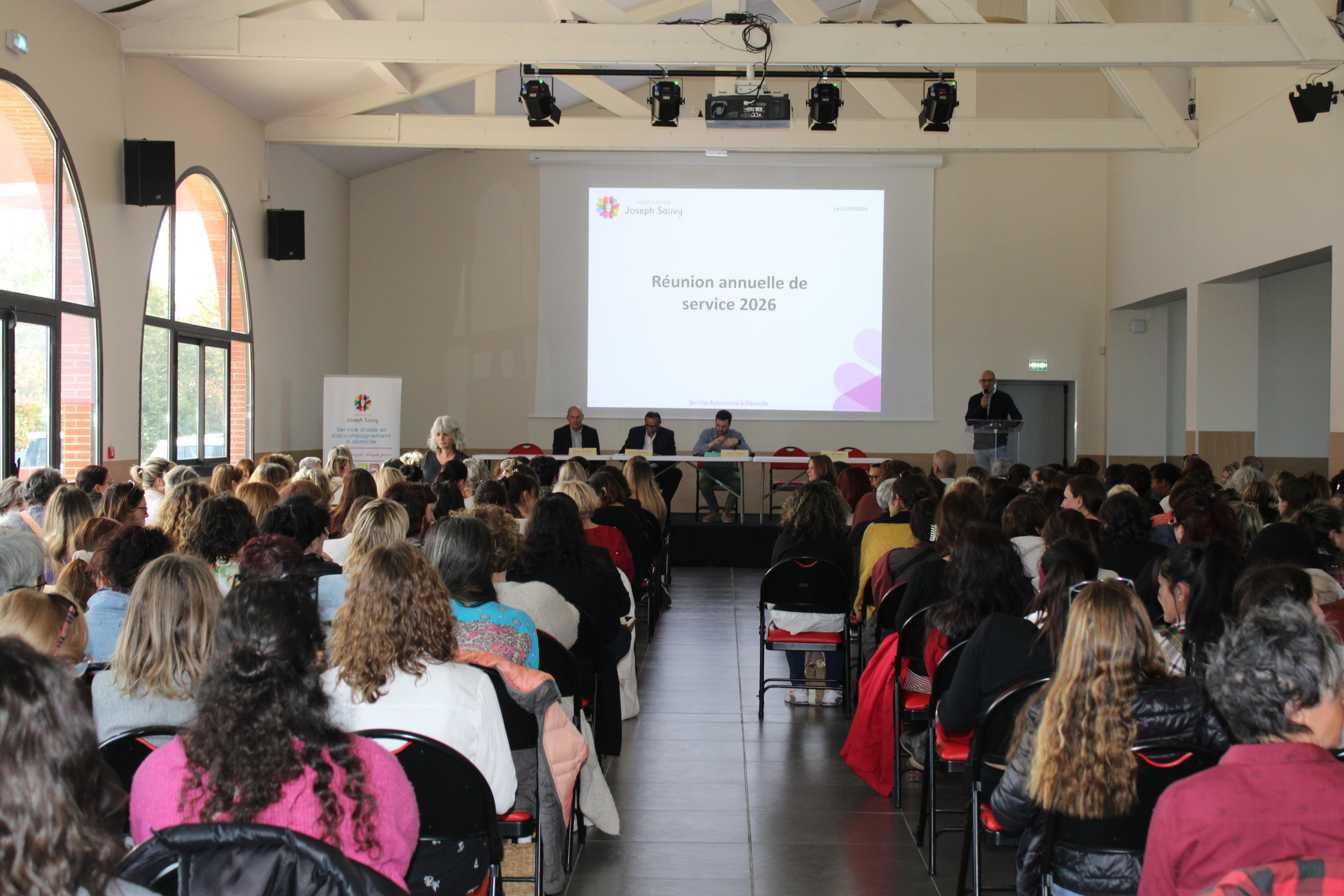 Le 23/03/2026 - Le 23 mars dernier, le SAAD Joseph Sauvy se réunissait pour son rendez-vous annuel aux Voiles Rouges à Canet en Roussillon. Un moment fort qui a rassemblé près de 60% (plus de 200 intervenant(e) s à domicile collaboratrices et collaborateurs autour d'une conviction partagée : l'accompagnement des personnes vulnérables à domicile reste au cœur de notre engagement. Au programme de cet après-midi : Le bilan 2025 et les points forts de l'année présentés par le directeur du service, Karim Boukriba Les prises de parole du directeur de la plateforme gérontologique, Stéphane Soler et du nouveau directeur général, Jérôme Rumeau, venus à la rencontre des équipes Un message fort du président de l'association, Gérard Majoral, qui a tenu à saluer l'engagement quotidien des professionnels de terrain et à exprimer la fierté et la reconnaissance du conseil d'administration pour leur rôle auprès des plus fragiles, dans les territoires les plus éloignés car « ce service incarne pleinement l'ADN de notre association : dignité des personnes et solidarité sur le territoire ». L'après-midi s'est poursuivie avec des ateliers riches et variés —sécurité routière, prévention santé avec le CAARUD-ASCODE, exosquelettes, application mobile, quiz bonnes pratiques… — avant de se clôturer dans la convivialité grâce à Sauvy Restauration. Cap sur l'année prochaine pour un nouveau rendez-vous où, ensemble, nous pourrons mesurer le chemin parcouru et la portée de nos actions au service des plus fragiles. Voir plus...