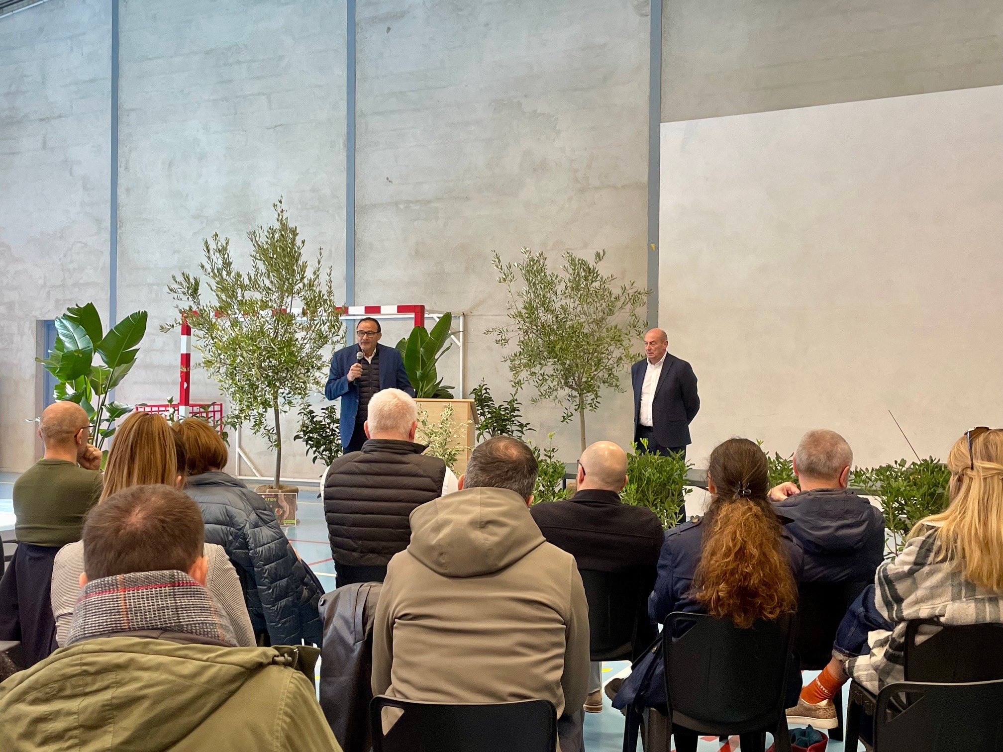Le 23/01/2026 - Vendredi 23 janvier 2026, les professionnels de la plateforme Handicap et Parcours se sont réunis au gymnase du DITEP Peyrebrune à Néfiach à l’occasion de la cérémonie des vœux du Président de l’association, M. Gérard Majoral, et du Directeur général, M. Jérôme Rumeau.