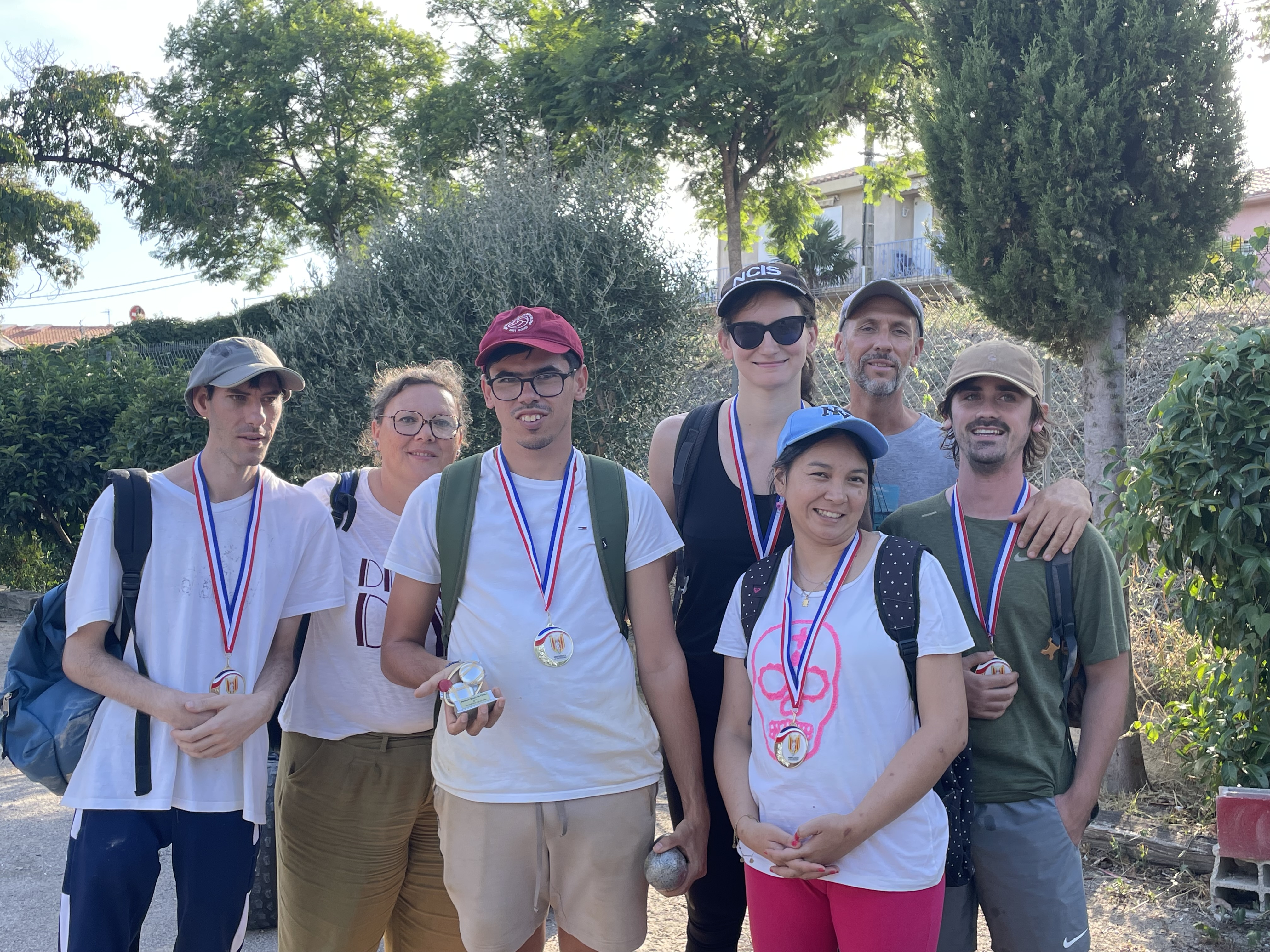 Le 06/09/2025 - Samedi 6 septembre 2025, un petit groupe du SAJ couleur de vie de Bompas a participé à la 4éme édition de la Coupe de pétanque organisée par le Club de Las Cobas et le service handicap de la ville de Perpignan. A ce titre, Julia, Léo, Jean-François, Clément et Anna ont intégré leur triplette composée d’un agent ou élu de la ville de Perpignan et d’un bouliste du Club. Cette journée a été un beau moment de partage sportif, récréatif et de rencontres. Nous remercions José, Bouliste du Club qui a su par sa joie de vivre, ses encouragements bienveillants et son coaching sans faille amener son équipe dans laquelle étaient Jean-François et Julia (du sport adapté St Estève) jusqu’en finale. La journée a été clôturée par une remise de récompenses. Tous sont repartis avec de magnifiques médailles et Jean-François a ramené la coupe. Nous remercions chaleureusement le Club de pétanques de Las Cobas et la ville de Perpignan pour cette initiative. Voir plus...